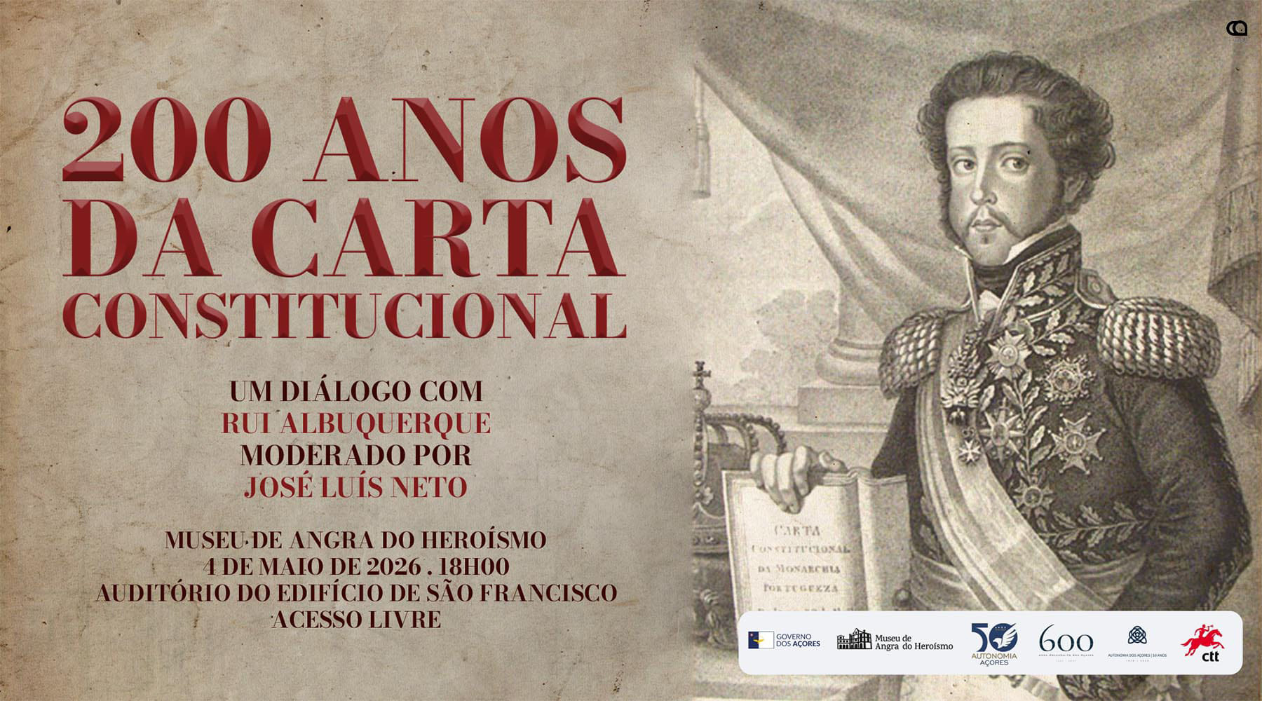 Promovida em estreita parceria com o Museu de Angra do Heroísmo, a iniciativa tem como orador convidado o Professor Doutor Rui Albuquerque, um reconhecido especialista em história do direito constitucional, cuja vasta carreira académica e de investigação tem sido profundamente dedicada às questões dos direitos humanos e ao estudo do liberalismo.